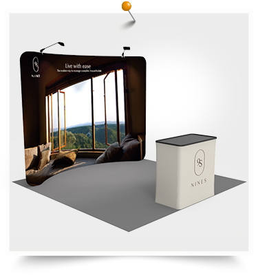 Signwin provides you magnificent and eye-catching 10ft curved tension fabric backwall display. It consists of high resolution straight grain fabric and pure aluminum frame, which can dominate your booth among competitors on the exhibitions. Its setup is quite easy and quick, so you can dismantle and move from one location to another without any technical support. Optional LED lights are available for you to decorate an attractive backwall display, why not have a start now?