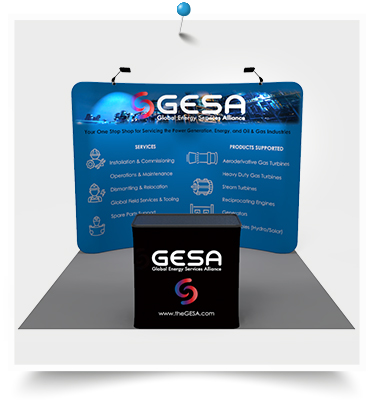 All graphic of this model utilizes heat transfer printing with full color, which is anti-wrinkling, flame-resistant and eco-friendly. You can also upgrade the display with optional LED lights to increase more attractiveness and exposures. A snap-tube aluminum frame with zippered tension fabric graphic as backwall display plus a podium converted from durable case should meet your desired demands on booth display.
