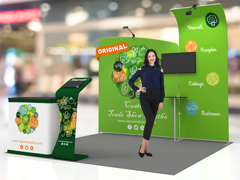 Customize a 10x10ft trade show booth combo for any events to grab attention, entices and engages audience and build your brand awareness at Signwin.