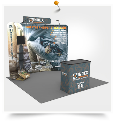 Our in-house design services are customized on a per project basis by collecting the logos, text, and images you provide, and tailoring it to fit your brand vision. Our design package includes a set number of design hours based on kit size, along with a brain-storming session and revisions with an experienced professional designer. Let us create a trade show display that will set you apart as an industry leader at your next event! Portable, easy to assemble and featuring high quality graphics.