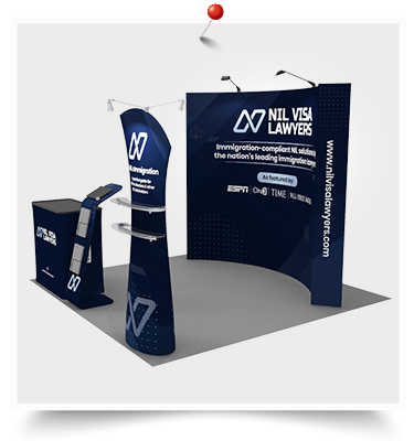Searching for a new type of booth that is lighter, greener and more economical than the traditional offerings? The 10x10ft standard trade show booth 30 featuring one of the most versatile combination, is sure to make people stop and take notice. The unbelievable kit consists of: one custom 10ft curved & printing fabric pop up trade show booth backwall display with premium case to podium, one angled top tension fabric banner stand with arm shelves, one tension fabric iPad, tablet & literature banner stand, all of which allow you to stand out from the crowd!