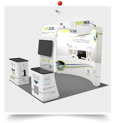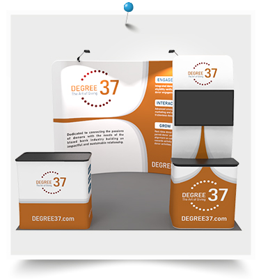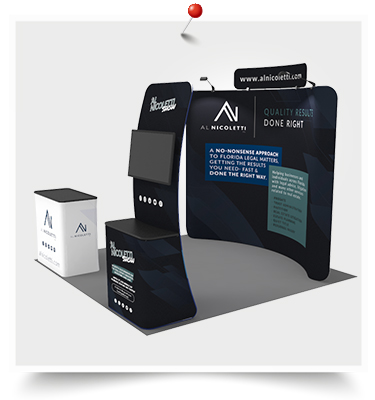 An increasing number of corporations switch to lighter, versatile and less complex tradeshow booth, which is exactly what we are pursuing for! Our expert team immensely suggests you to adopt the 10x10ft standard trade show booth 26. The economical kit is composed of: one custom 10ft curved & collapsible tension fabric trade show backwall display with two LED lights and one custom w58" x H12" curved tension fabric header, one hard case to podium with custom printed graphic and one monitor display table banner stand.