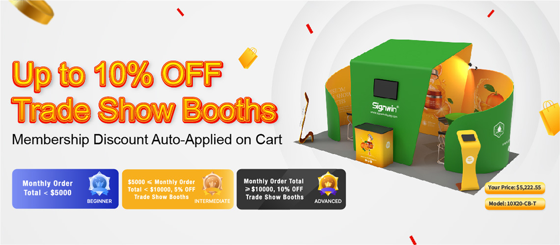 Additional features: Fast turnaround time and no shipping charges. Artwork proof available for approval before printing. Custom design services available to create a booth that perfectly matches your brand.