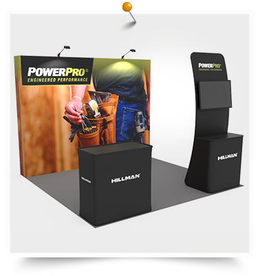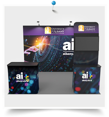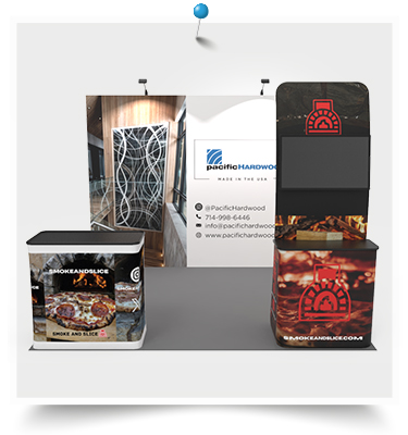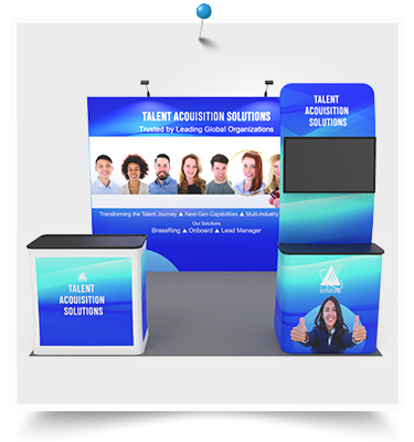 Customize a 10x10ft trade show booth combo for any events to grab attention, entices and engages audience and build your brand awareness at Signwin. This trade show booth combo offers a complete trade show experience with a custom 10ft straight & solid fabric pop up trade show backwall display, a monitor display table banner stand, a hard case to podium with custom printed graphic and 2 trade show display led lights.